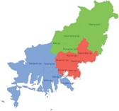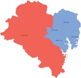 울산광역시의 경우 세 가지 방안 모두 동부와 서부로 구분을 제안한다. 다만 세부 군집 구성이 약간 다른데 사회·경제 요소를 포함한 방안들에서는 인구밀도가 높은 남구와 중구가 동부 도심 권역에 속하는 반면, 위험기상만 반영된 방안에서는 이들 지역이 울주군과 함께 서부로 분류된다(Fig. 7). 이는, 폭염·호우 발생 특성만으로 군집화할 경우 울산 도심 일부가 울주군과 동일 권역으로 묶일 수 있지만, 사회·경제 요인을 고려하면 도심권과 비도심권으로 나뉘는 것으로 볼 수 있다.